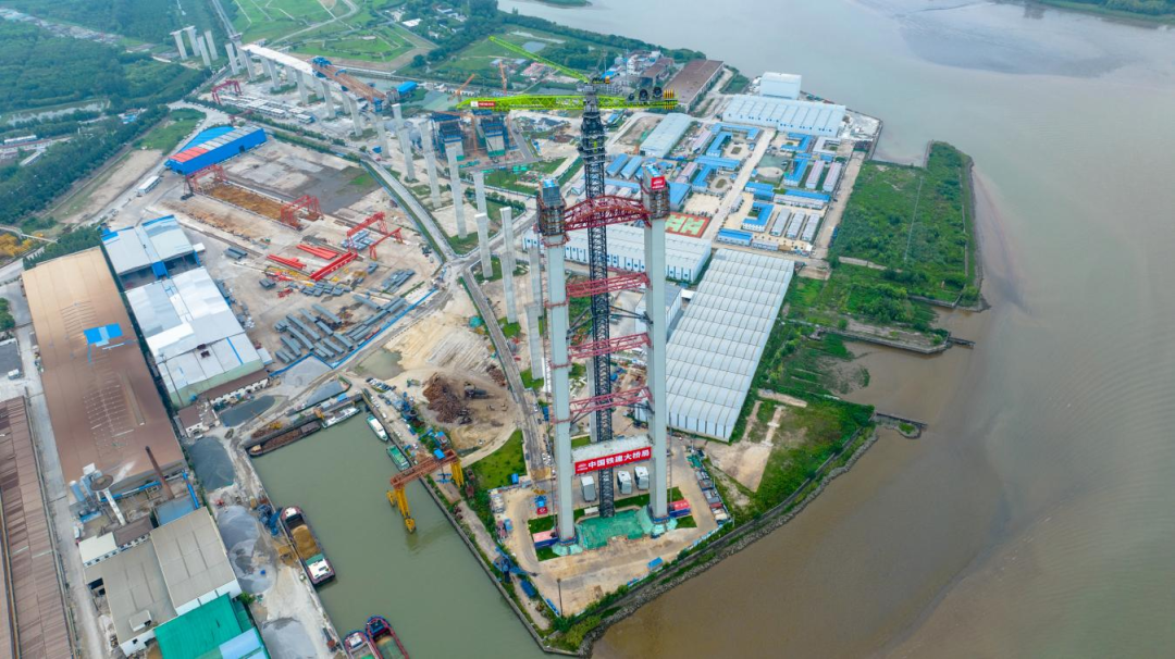张靖皋长江大桥北航道桥北主塔塔柱施工全部完成